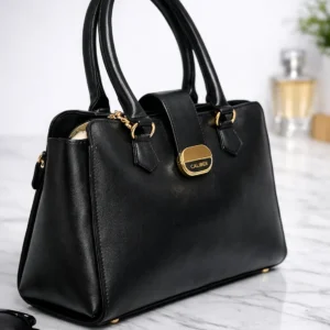 Elegant Structured Top Handle Handbag-Black