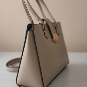 Elegant Structured Top Handle Handbag-Beige