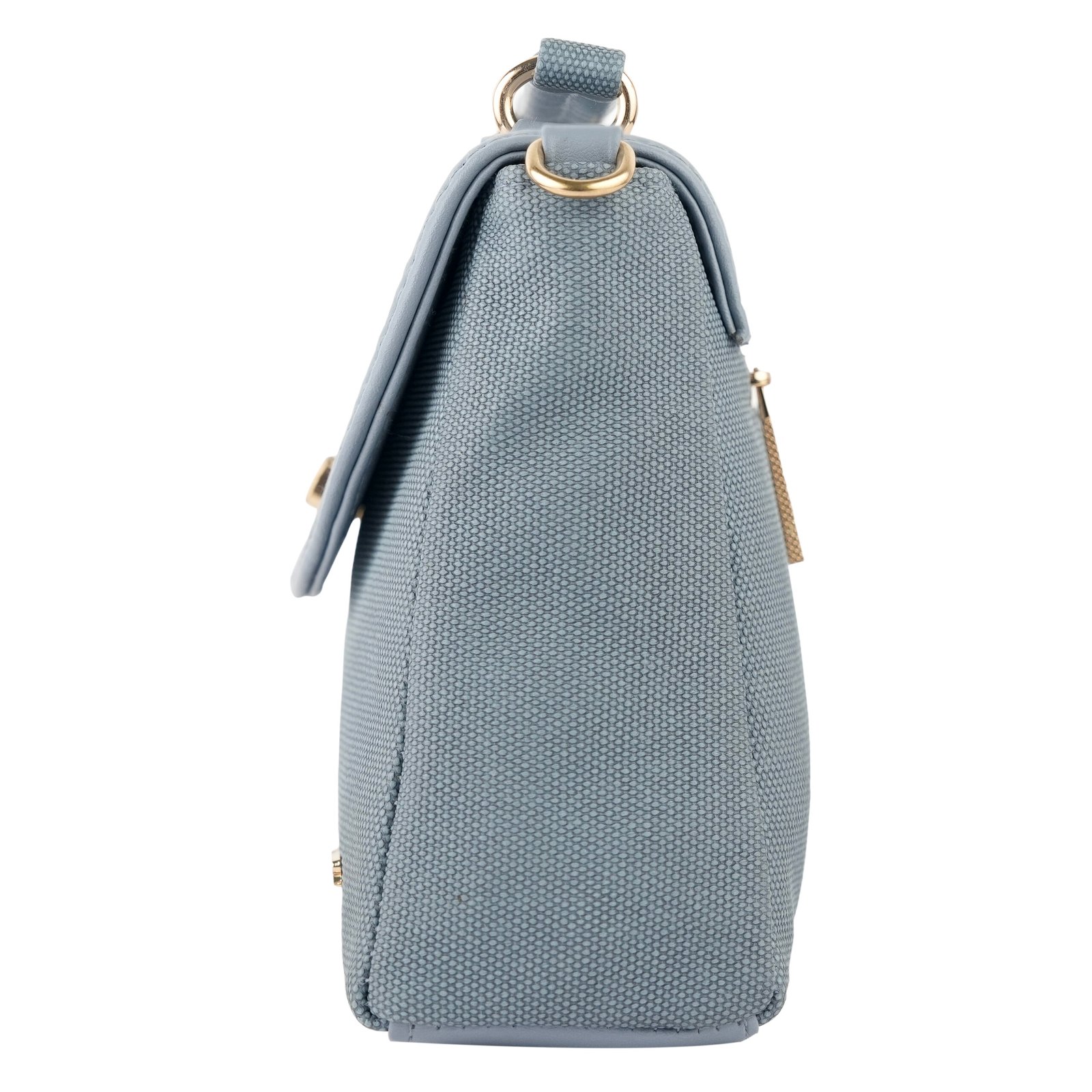 A stylish sky blue crossbody bag featuring a classic flap design with a gold twist lock and adjustable strap, perfect for everyday elegance.
