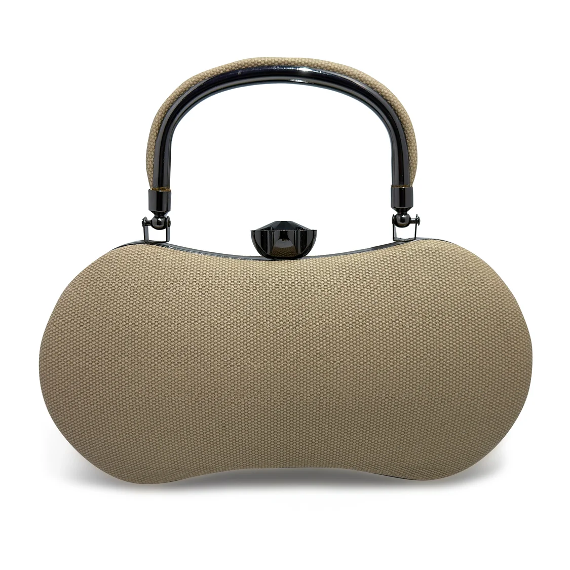 A compact structured mini bag designed with elegant curves and a top handle, perfect for carrying essentials with effortless style.